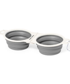 Faltbarer Futternapf aus Weizenstroh. Kompaktes Design, mit zwei Fächern und perfekt für den Einsatz überall. Inklusive praktischem, einfach zu befestigendem Karabiner. Präsentiert in einer einzelnen recycelten Tasche.
