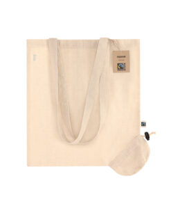 Faltbare Tasche hauptsächlich aus 120g/m2 Baumwolle. Mit Fairtrade-Zertifizierung, einem solidarischen und alternativen Handelssystem, das die Entwicklung der Gemeinden und den Kampf gegen die Armut fördert. Mit genähter Ausführung, langen 70cm Tragriemen und einer Tragkraft bis zu 6kg. Mit einem Anpassungszubehör für ein einfaches Falten. Inklusive Fairtrade-Etikett und charakteristischem Hangtag aus Recyclingpapier.