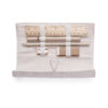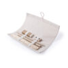 Originelles Etui der Linie Nature aus Baumwolle und Jutefasern. Mit elegantem Knopfverschluss. Enthält Zubehör in Naturfarbe: Radiergummi, Anspitzer, Kugelschreiber aus Recyclingkarton, Holzbleistift und Holzlineal.