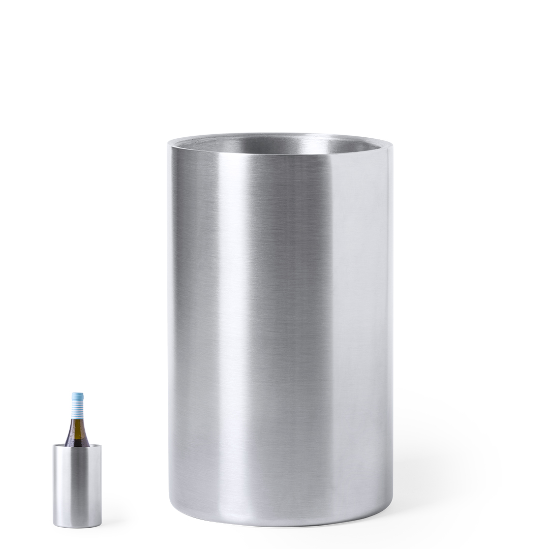 Flaschenkühler aus mattiertem Edelstahl. Für 1 Flasche und präsentiert in einer attraktiven Designbox.