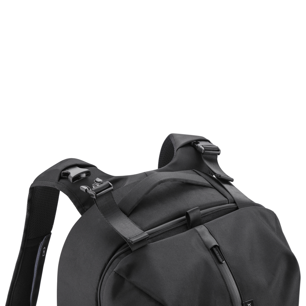 Der flexible und praktische Flex Gym Bag ist der erste 2-in-1 Business-Rucksack & Sporttasche. Durch die Erweiterung der Vordertasche von 16 auf 24 Liter lässt sich dieser Rucksack schnell vom Business- zum Fitness-Style umwandeln. Das nahezu diebstahlsichere Design ohne Zugriff auf die Vorderseite und die versteckten Reißverschlüsse am Hauptfach sorgen dafür, dass Sie Ihre beruflichen Utensilien sicher transportieren können. In der RFID-geschützten Tasche auf der Rückseite können Sie Ihre Brieftasche, Ihr Handy oder Ihre Kreditkarten sicher aufbewahren. Außerdem bietet dieser Rucksack einen USB-Schnellladeanschluss am Schultergurt, an dem sich auch ein Sonnenbrillenhalter befindet. Der Flex Gym Bag ist der perfekte Rucksack, egal ob Sie auf dem Weg zur Arbeit, zur Universität oder zum Fitnessstudio sind. Hergestellt aus rPET mit dem AWARE™-Tracer, der die Verwendung von tatsächlich recyceltem Stoff garantiert. 42% recycelter Inhalt. Registered Design®.