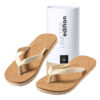 Paar Flip-Flops mit exklusivem Design in limitierter Auflage. Obersohle aus Naturkork, mit Riemen in Naturfarbe passend zur Sohle. Erhältlich in den Größen 36-38 und 42-44. Präsentiert in einer Limited Edition Experience-Hülle mit einzigartigem Design und geschützt durch gewerbliche Schutzrechte. Karte aus recyceltem Karton mit Beschreibung der Limited Edition. Aus der perfekten Kombination aus Exklusivität und Design entsteht die Limited Edition, eine besondere Kollektion limitierter Werbeideen. Ein neues Konzept, inspiriert von der Verschmelzung hochwertiger Artikel mit den neuesten Trends in limitierten Auflagen und bietet ein einzigartiges, exklusives und unvergessliches Geschenkerlebnis.