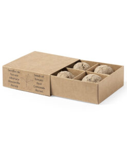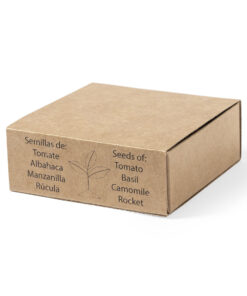Gemüsegarten-Set mit Samen für Tomaten, Basilikum, Rucola und Kamille. Präsentiert in einer Schachtel aus recyceltem Karton mit Pflanzanleitung, Made in Europe-Emblem und mit 4 unabhängigen Fächern.