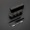 Das ultimative Hochleistungs-Präzisions-Bit-Kit enthält wichtige Teile für die Reparatur von Handys, Tablets, PCs und anderen Geräten. Die Lebensdauer der meisten elektronischen Geräte kann mit einer einfachen Reparatur, die oft in Online-Anleitungen zu finden ist, leicht verlängert werden. 46 Teile verpackt in einem Koffer aus RCS-zertifiziert recyceltem Aluminium. Gesamter recycelter Inhalt: 22% basierend auf dem Gesamtgewicht des Artikels. Die RCS-Zertifizierung gewährleistet eine vollständig zertifizierte Lieferkette für die recycelten Materialien. Das Set enthält einen Schraubendrehergriff und eine Pinzette. Die Bits werden magnetisch gehalten, sind leicht zu platzieren und aus dem Koffer zu nehmen.