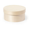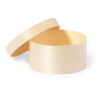 Präsentationsbox im runden Format, aus Naturholz mit passendem Deckel.