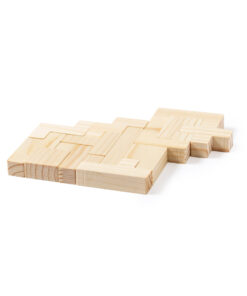 Geschicklichkeitsspiel aus Massivholz. 13 Stück in einer Holzkiste mit Deckel. Präsentiert in einer individuellen Box mit Kraftpapier-Design.