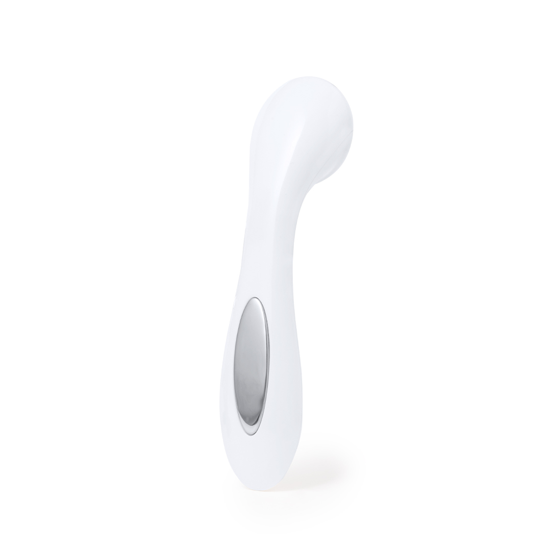 Elektrischer Gesichtsreiniger mit Vibration, der mit seiner flachen Basis eine angenehme Massage bewirkt und dabei hilft, die Poren für eine effektivere Hygienisierung zu öffnen. Mit der Möglichkeit, zwischen positivem und negativem Fluss zu wählen, und angetrieben durch eine Knopfzellenbatterie (im Lieferumfang enthalten). Präsentiert in einer Kraft-Design-Box.