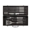 12tlg. Edelstahl Grillset, inkl. 4 Spießen, Messer, 4 Maiskolbenhalter, Bratenheber, Grillzange und -gabel mit Schutzhülle, Set konfektioniert in Aluminiumkoffer.