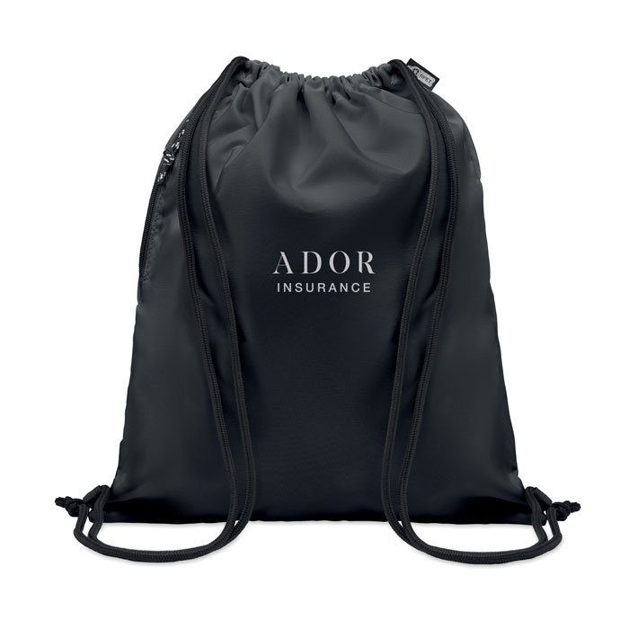 Großer Beutel mit Kordelzug. Seitliche Reißverschlusstasche. 300D RPET-Polyester