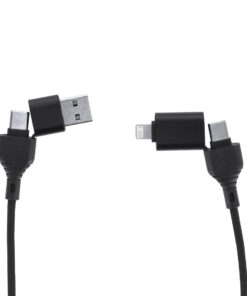 60W Lade- und Datenkabel mit Datenschutzsystem. Hergestellt aus recyceltem Aluminium in Kombination mit RPET und recyceltem ABS. Mit integriertem Sicherheitsknopf, der die Datenübertragungsfunktion deaktivieren kann – eine praktische Lösung zum Schutz persönlicher und vertraulicher Informationen bei der Verwendung des Kabels in öffentlichen Räumen, um unbefugten Zugriff oder Hacking-Versuche zu verhindern. Eingangsanschlüsse: Typ-C und USB; Ausgangsanschlüsse: Typ-C und Lightning. Recyceltes Aluminium ist ein Material mit nahezu unendlichen Recyclingmöglichkeiten, ohne seine ursprünglichen Eigenschaften zu verlieren und mit geringerem Energieverbrauch im Prozess. RPET-Material wird aus recyceltem Kunststoff hergestellt, um die Wiederverwendung von Kunststoffabfällen zu fördern und zur Nachhaltigkeit des Planeten beizutragen.