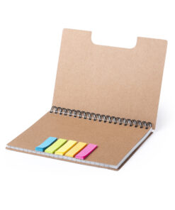 Ring-Notizbuch mit Cover aus recyceltem Karton. Mit auffälligem Design und einer Stanzung, die die Haftnotizen im Inneren zeigt. Enthält Notizblock mit 60 linierten Blättern und 125 Mini-Haftnotizen.