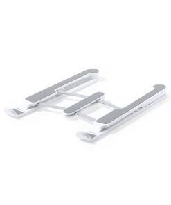 Zusammenklappbarer Laptop-Ständer. Hergestellt aus strapazierfähigem ABS mit rutschfestem TPR-Schutz für einen festen Sitz auf dem Gerät. Höhenverstellbar, kompaktes Faltmaß und präsentiert in einer Wildlederhülle mit Kordelzugverschluss und in einer individuellen Designbox.