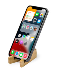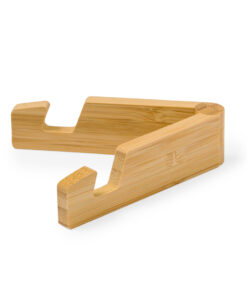 Faltbarer Halter für mobile Geräte aus widerstandsfähigem Bambus. Mit verstellbaren Füßen und einzeln in einer recycelten Papiertüte präsentiert.Materialien wie Bambus fördern die Verwendung von natürlichen Rohstoffen und reduzieren den Schadstoffausstoß. Es handelt sich um eine sehr widerstandsfähige und vielseitige Pflanze, die schnell wächst und sich regeneriert, was sie zu einer hervorragenden Alternative zu herkömmlichem Holz macht.