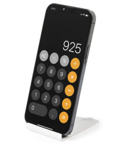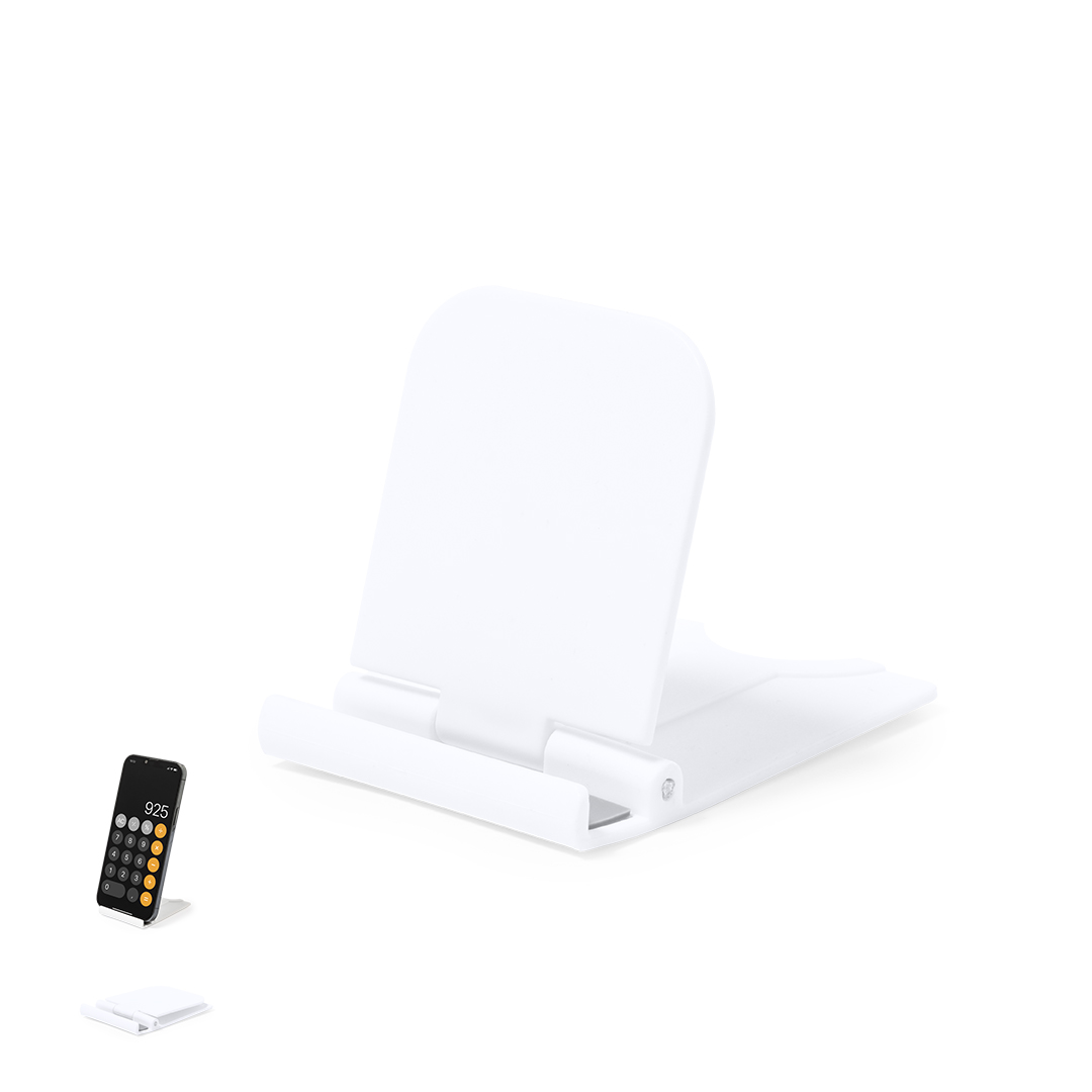 Smartphone- und Tablet-Halter aus widerstandsfähigem ABS. Kompaktes und faltbares Design, um es überall hin mitzunehmen. Mit verschiedenen Winkelpositionen und Stützpads. Präsentiert in einer individuellen recycelten Tasche.