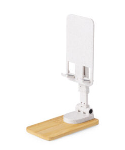 Faltbarer Halter für Smartphones und Tablets, aus Weizenstroh mit widerstandsfähigem Bambusgrund. Höhenverstellbar, mit rutschfesten Gummiauflagen an Fuß und Halterung. Große Branding-Oberfläche, besonders geeignet für Tampondruck auf dem Halter und Laserdruck auf der Basis.Materialien wie Bambus fördern die Verwendung natürlicher Rohstoffe und reduzieren die Schadstoffemissionen. Es stammt von einer sehr widerstandsfähigen und vielseitigen Pflanze mit schnellem Wachstum und Regeneration, was es zu einer ausgezeichneten Alternative zu traditionellem Holz macht.Weizenstroh fördert die Verwendung natürlicher Rohstoffe und reduziert so die Schadstoffemissionen.