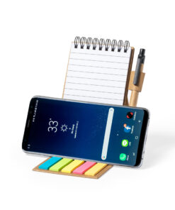 Linie Natur Notizblock, der in einen Smartphone-Halter umgewandelt werden kann und aus recyceltem Karton besteht. Enthält:Ringnotizblock mit 30 weißen, linierten Blättern und Stiftehalter.Kugelschreiber aus recyceltem Karton mit schwarzen Details, Druckknopfmechanismus und blauschreibender Tinte.25 mittelgroße Haftnotizen.125 Mini-Haftnotizen in verschiedenen Farben.