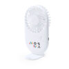 Tragbarer Ventilator aus robustem ABS. Mit drei Geschwindigkeiten und integrierter Smartphone-Halterung. Stromversorgung durch einen 300-mAh-Akku mit Ladezustandsanzeige und Micro-USB-Kabel im Lieferumfang enthalten. Einzeln verpackt in einer Kraft-Design-Box.