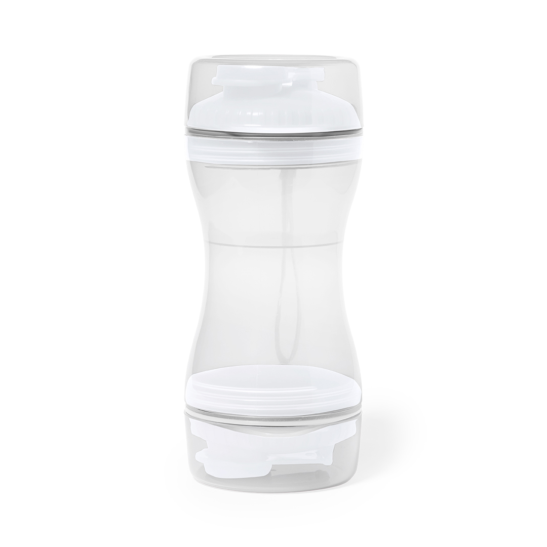 Praktisches Set für Haustiere aus haltbarem ABS. Mit zwei getrennten Fächern von 330 ml und 280 ml, mit Schraubverschluss für die Sicherheit und Spender. Enthält auch zwei Deckel für die Verwendung als Schüssel. Einzeln verpackt in einer Kraft-Design-Box.