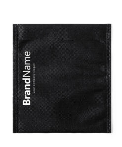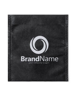 Vielseitiger Bezug aus schwarzem Vliesstoff mit verschweißter Oberfläche, atmungsaktiv und waschbar. Kompaktes Format und ideal zum Bedrucken.