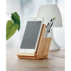 Induktive Double Coil Ladestation für ein Gerät. Bambus-Gehäuse. Inkl. Smartphone-Halter und Stiftehalter. Ausgang: DC5V/1A (5W).Da Bambus ein natürliches Material ist, können Farbton und Maße pro Artikel variieren. Dies kann zu Abweichungen im Ergeb