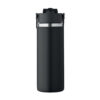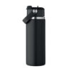 Doppelwandige Isolierflasche aus recyceltem Edelstahl (90 % recycelter Edelstahl und 10 % Edelstahl) mit Henkel. Integrierter Trinkhalm und Trinköffnung. Auslaufsicher. Füllmenge: 500 ml.