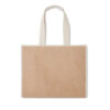Diese Shopping Tasche aus Jute hat lange Tragegriffe. Das Innere ist laminiert, um Ihre Einkäufe frisch zu halten. Sie kann per Klettverschluss geschlossen werden. Auf der Vorderseite befindet sich eine Tasche aus Canvas für kleinere Gegenstände. Diese Jutetasche ist perfekt für den täglichen Einkauf von Lebensmitteln. Sie hat eine lange Lebensdauer und ist somit eine großartige Alternative zu Einweg- Plastiktüten. Dieses Produkt ist nach OEKO-TEX® STANDARD 100 zertifiziert.