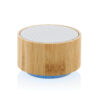 Kabelloser 3W-Lautsprecher mit FSC®-Gehäuse aus 100% Bambus und RCS-zertifiziert (Recycled Claim Standard) recyceltem ABS. Gesamter Recyclinganteil: 16% basierend auf dem Gesamtgewicht des Artikels. Die RCS-Zertifizierung gewährleistet eine vollständig zertifizierte Lieferkette der recycelten Materialien. Der Lautsprecher hat an der Unterseite ein integriertes Licht. Er hat einen 300mAh-Akku für bis zu 3 Stunden Spielzeit; BT4.1 sorgt für eine stabile Verbindung auf bis zu 10m. Mit Mikrofon um auf Telefonate führen zu können. Verpackt in FSC Mix FSC®-Box. Inklusive RCS-zertifiziertem Ladekabel aus recyceltem TPE. Artikel und Zubehör 100% PVC-frei.