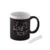 Kaffeebecher aus Keramik mit Tafelbeschichtung zum Beschriften. Füllmenge: 300 ml. Verpackt in einem weißen Karton.