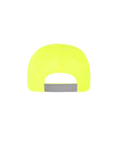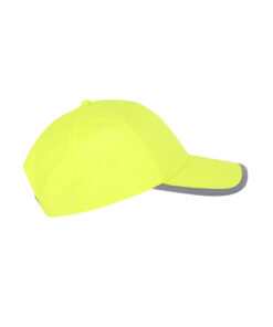 Sport Cap für Kinder aus weichem Polyester im zweifarbigen Design in fluoreszierendem Gelb mit reflektierendem Profil auf der Krempe und dem Verschluss. Klettverschluss und gestickte Belüftungsöffnungen.