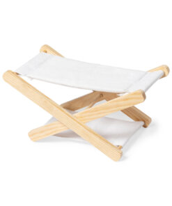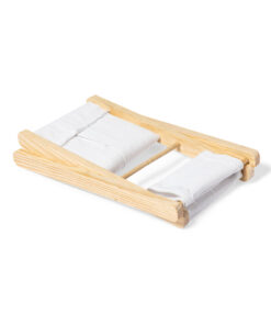 Echte klappbare Kopfstütze mit Struktur aus Holz und Stoff aus Baumwolle mit natürlichem Finish.