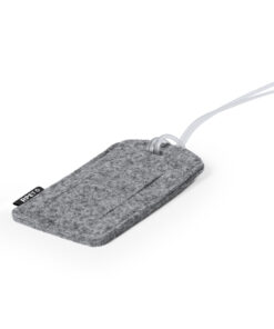 Gepäckidentifikator aus RPET-Filz. Kann mithilfe des flexiblen Riemens und mit einer Karte für grundlegende Informationen an jedem Koffer befestigt werden. Hergestellt aus RPET-Filz, mit Fenster und RPET-Etikett.