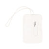 Gepäckanhänger aus Bambus und geädertem Silikon. Kann mithilfe des flexiblen Riemens und mit einer Karte für grundlegende Informationen an jedem Koffer befestigt werden. Hergestellt aus Silikon mit natürlichem Farbton, inklusive zentraler Bambusplatte. Präsentiert in einer individuellen und recycelten Papiertüte.
