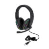 Gamer-Kopfhörer, gestaltet für ein immersives Spielerlebnis. Kopfbügel-Design mit Surround-Sound und mehrfarbiger LED-Beleuchtung, die automatisch blinkende Effekte kombiniert. Integriertes Mikrofon und 160 cm Kabel mit integriertem Lautstärkeregler und Doppelanschluss (USB und 3,5 mm Klinke).