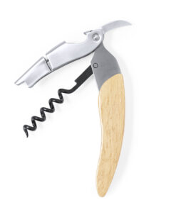 Korkenzieher aus Edelstahl, mit weichem Holzgriff und integriertem Kapselschneider. Präsentiert in einer individuellen Kraft-Designbox.