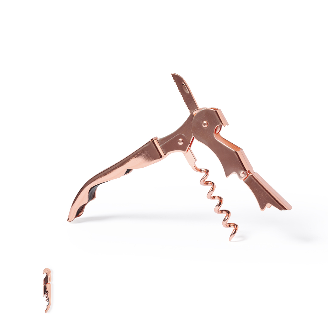 2-Takt-Korkenzieher aus rostfreiem Stahl mit verzinkter Kupferbeschichtung. Integrierter Kapselschneider und präsentiert in einer individuellen Designbox.