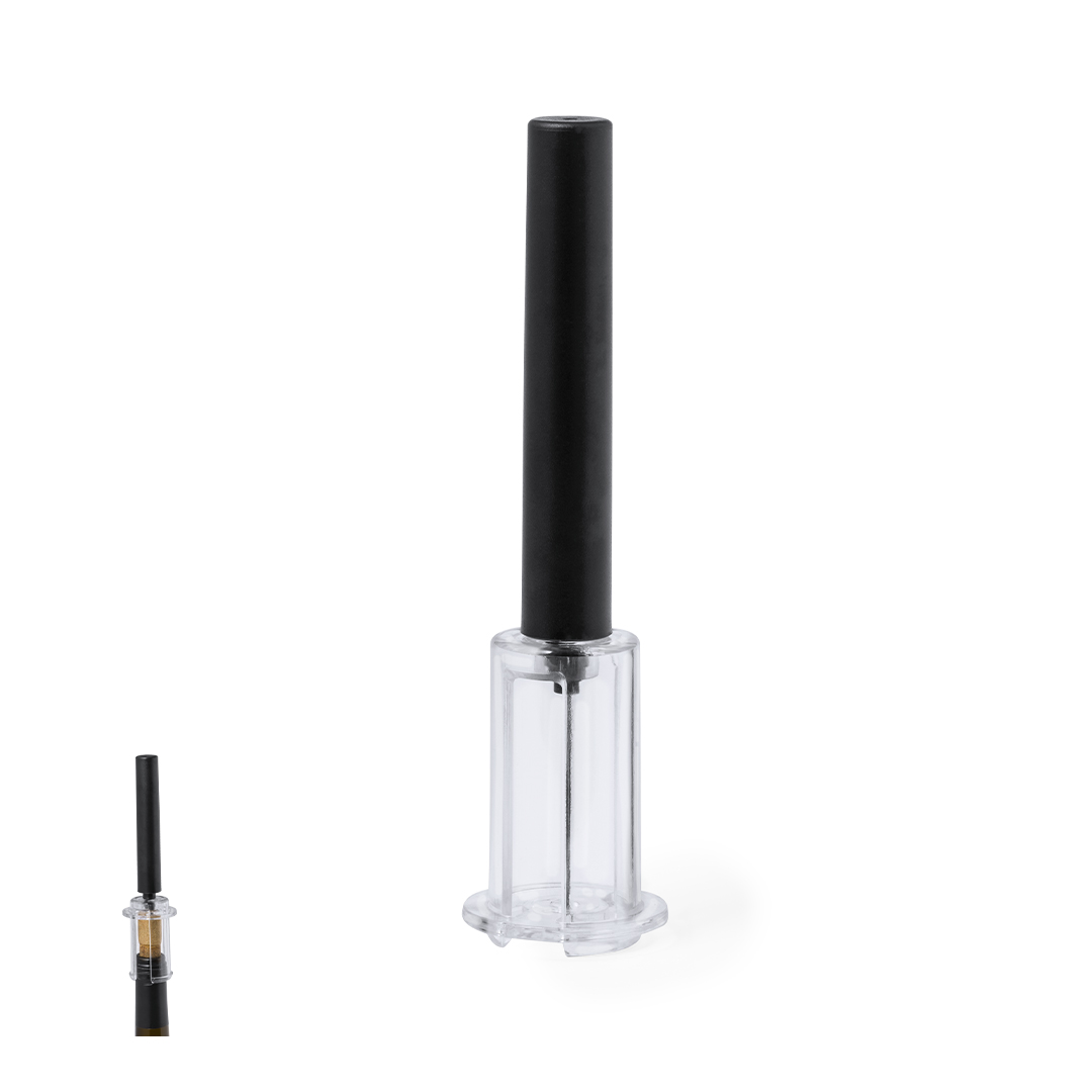 Korkenzieher mit integrierter Luftpumpe zum einfachen und sicheren Entfernen des Korkens. Hergestellt aus widerstandsfähigem ABS-Material. Präsentiert in einer attraktiven Einzelbox im Kraftpapier-Design.