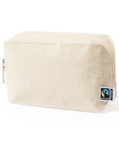 Linie „Natur“ Kosmetiktasche hergestellt aus Baumwolle 180g/m2 in einem natürlichen Farbton. Mit Fairtrade-Zertifizierung, einer Alternative zum konventionellen Handelssystem, die die Entwicklung der Völker und den Kampf gegen die Armut verfolgt. Hauptfach mit Reißverschluss und passendem Abzieher, inklusive Fairtrade-Label und Anhänger aus recyceltem Karton.
