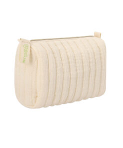 Necessaire aus recycelter Baumwolle in gepolstertem Design. Innenfutter. Enthält ein Merkmal für recycelte Baumwolle am Ziehband.