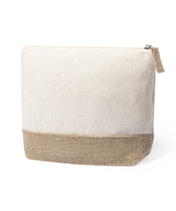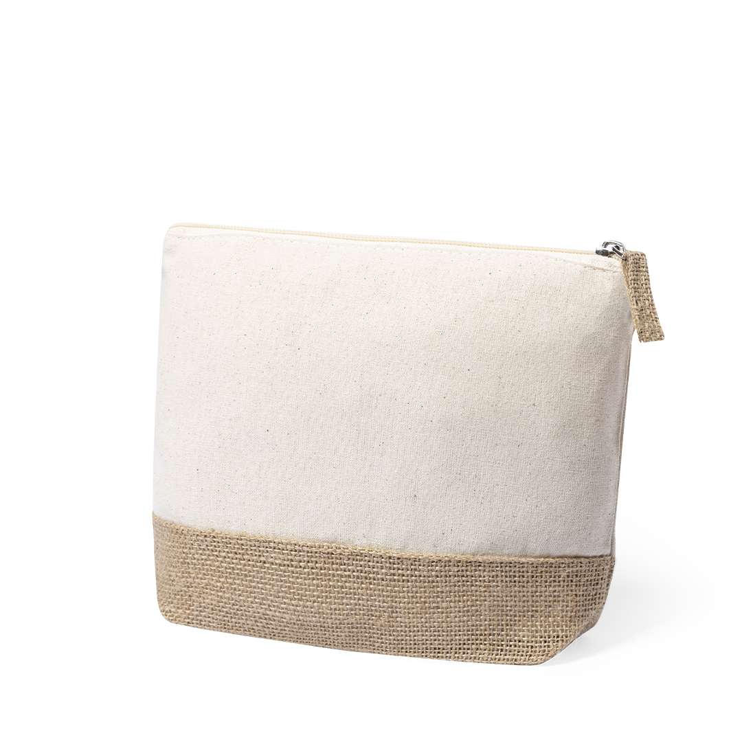 Natur Line Kosmetiktasche aus einer Kombination von laminierter Jute und natürlicher Baumwolle. Mit Reißverschluss und passendem Jutegriff.