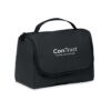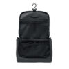 Kosmetiktasche aus weichem PU. Großes Hauptfach, inneres Netzfach mit Reißverschluss und weiteres Netzfach. Aufhänger und 210D RPET-Futter.