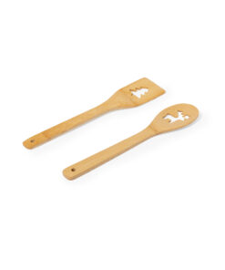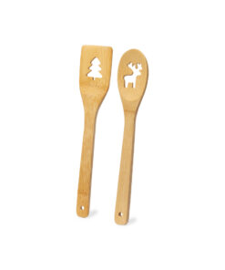 Originelles Küchenset mit ausgestanzten Weihnachtsmotiven. Inklusive Löffel und Paddel aus poliertem Bambus. Präsentiert in einer individuellen Kraft-Design-Box.