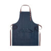 Küchenschürze mit verstellbarem Nackengurt und 3 Fronttaschen aus 240 g/m² Denim mit Bindegurt aus Baumwolle. Lieferung in individuellem Karton.