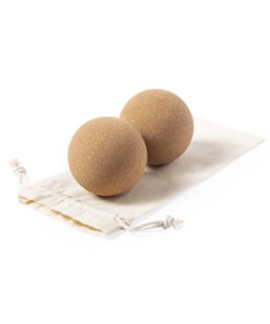 Linie „Natur“ Set mit 2 Bällen für Yoga und andere Aktivitäten. Hergestellt aus widerstandsfähigem, natürlichem Kork und präsentiert in einer Baumwolltasche mit Kordelzugverschluss. Mit Übungsbeispielen.