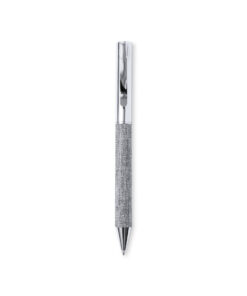 Kugelschreiber aus verchromtem Metall, mit RPET-Polyester beschichtetem Schaft, hergestellt aus recyceltem Kunststoff, um die Wiederverwendung von Kunststoffabfällen zu fördern und die Nachhaltigkeit unseres Planeten zu unterstützen. Eleganter Metallclip und passendes Zubehör, Drehmechanik und blauschreibender Tinte. Mit RPET-Emblem auf dem Schaft und präsentiert in einem Kraft-Etui mit passender Hülle.
