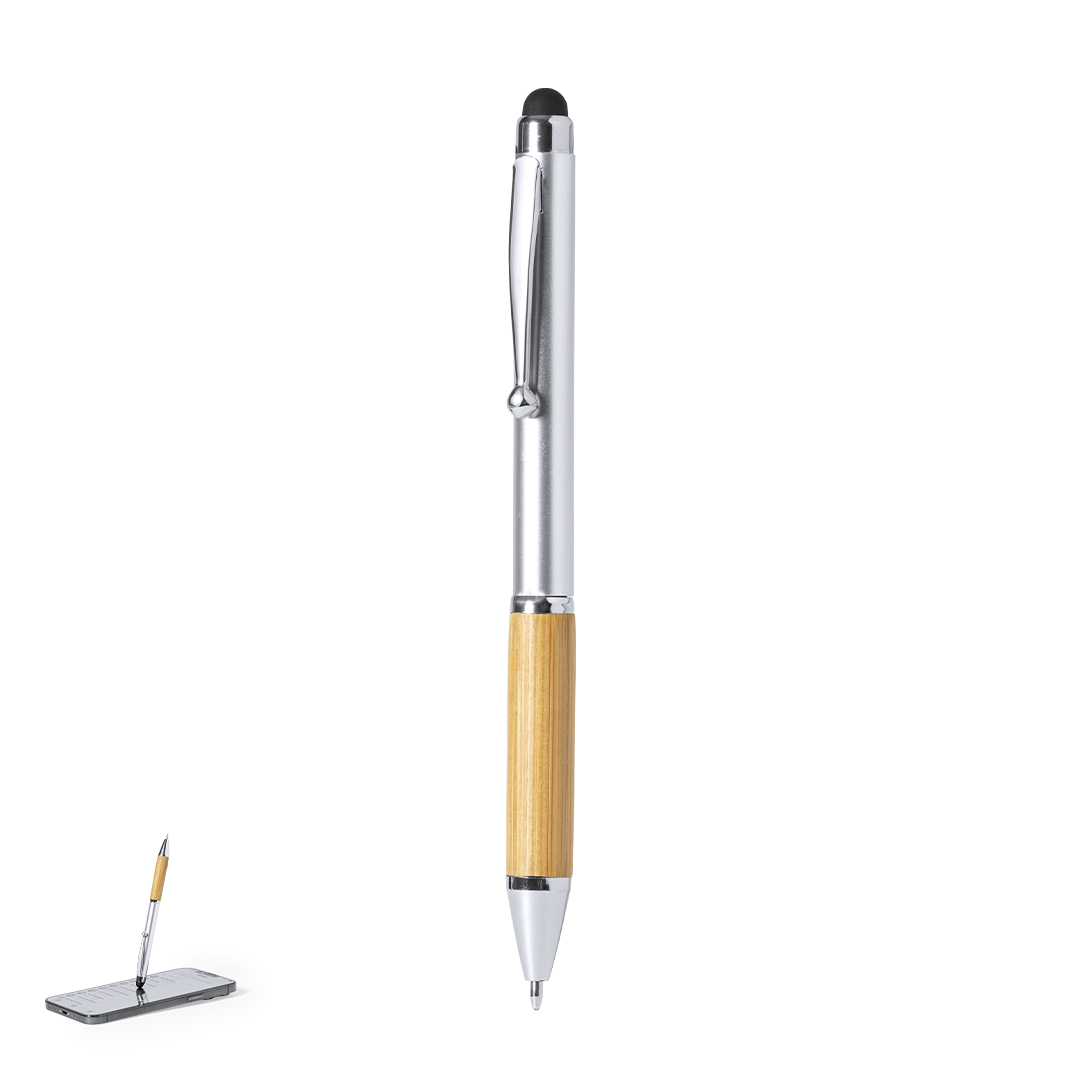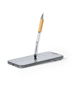 Eleganter Stylus-Kugelschreiber der Linie Natur mit Drehmechanik. ABS-Körper mit glänzender Oberfläche und Bambusgriff, mit passendem Zubehör. Metallischer Clip und blaue Tinte.