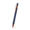 Hervorragender Kugelschreiber aus Aluminium mit Druckknopfmechanismus. Robuster, mattierter Aluminiumschaft mit dekorativen Elementen in eleganter Kupferoptik, mit Schaft in einer großen Auswahl an markanten Farben. Metallclip und schwarzer Zeiger oben. In blauer Tinte.