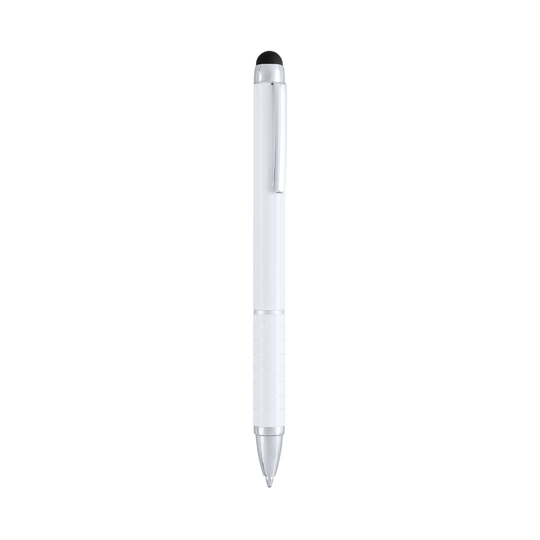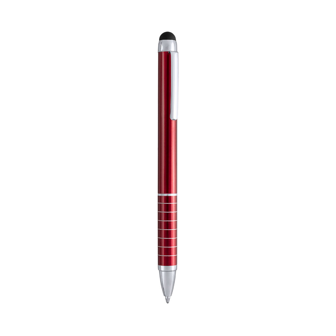 Dreh-Kugelschreiber mit Aluminiumgehäuse in Metallic-Ausführung in kräftigen Farben. Mit Stylus. Kontrastelemente und Ringe in Silber. Origineller Ring-Griff und blaue Tinte.