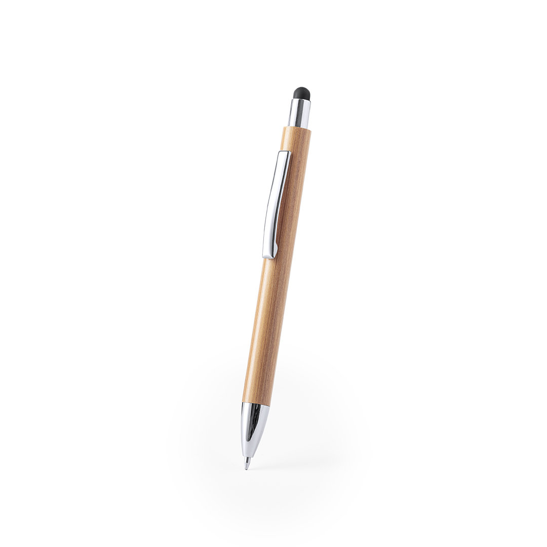 Nature Line Kugelschreiber, mit Bambusschaft und verchromten Beschlägen, mit schwarzem Touchpen. Druckknopfmechanismus, Metallclip und Jumbo-Patrone mit blauer Tinte. Jumbo-Mine