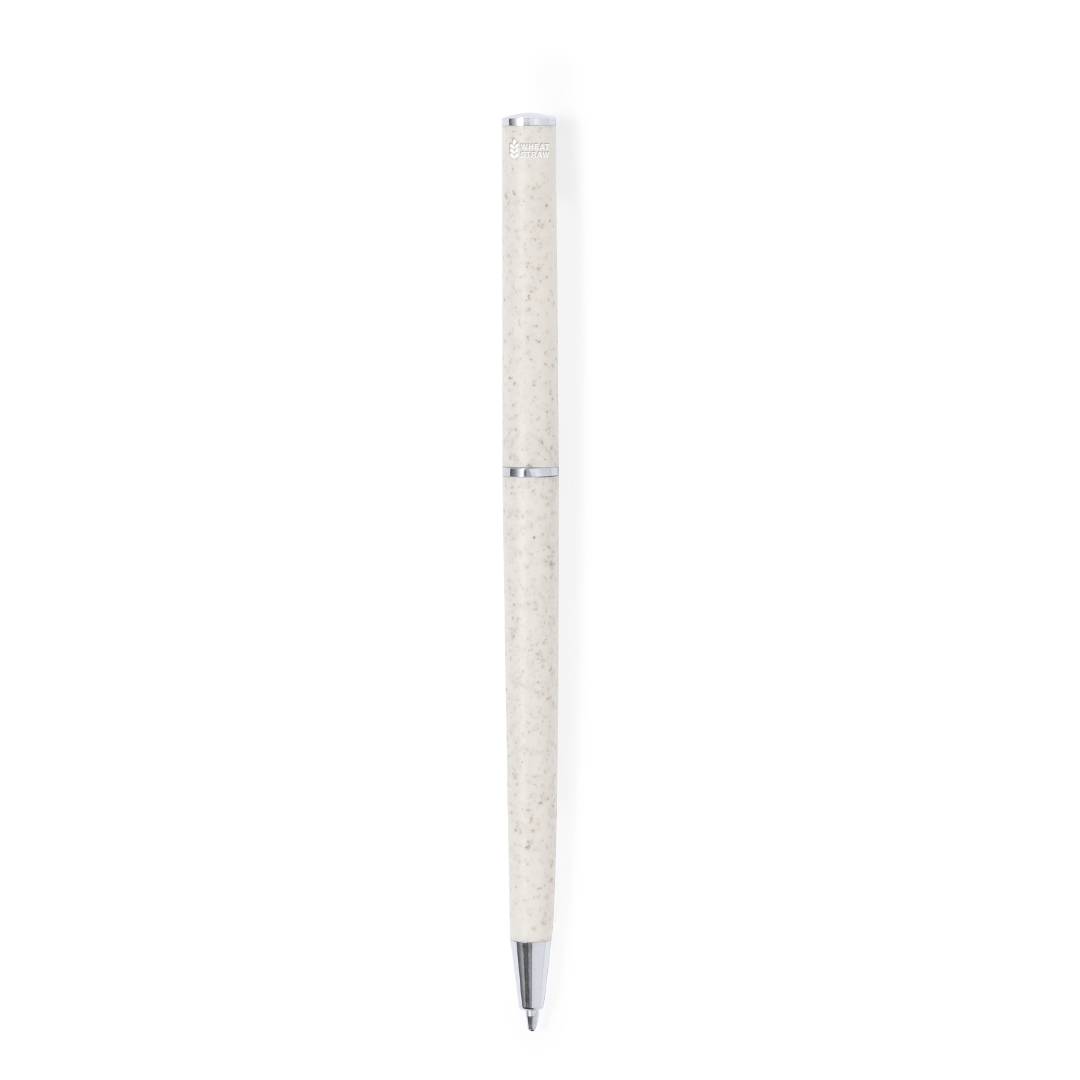 Kugelschreiber mit Schaft aus Weizenstroh. Mit Metallclip und verchromten Beschlägen, Drehmechanik und blauer Tinte. Mit Weizenstroh-Logo und in einer Naturfarbe erhältlich.Weizenstroh fördert die Verwendung von natürlichen Rohstoffen und reduziert so den Schadstoffausstoß.