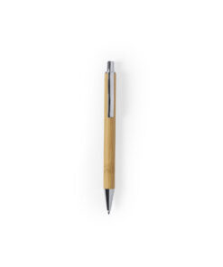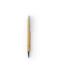 Naturlinie, Kugelschreiber mit Druckmechanismus. Korpus aus Bambus, Metallclip und verchromter Drücker. Blaue Tinte.